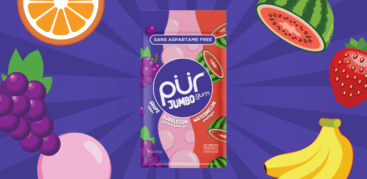 PUR Sugar-Free Jumbo Gum Grape, Bubblegum, Watermelon
