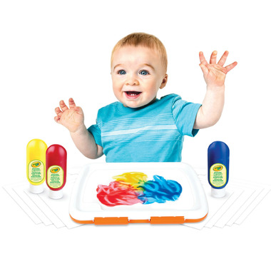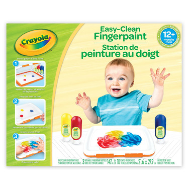 Le nettoyage est facile : l'appareil peut être facilement lavé dans l'évier ou sur le panier supérieur du lave-vaisselle. Les couleurs de peinture pour les doigts lavables Crayola incluses comprennent des teintes vives de rouge, de bleu et de jaune.