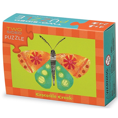 Simple fun! Little puzzles with a different image on each side. Comes in a matchbox package.