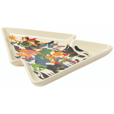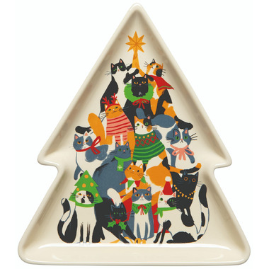 Le plat de Noël décoré Kitty Carol est parfait pour les amuse-gueules ou les bibelots. Une forme amusante permet une excellente conversation, quelle que soit son utilisation. Un mélange de miaulements, une harmonie de hurlements ; une collaboration entre chats accueille la saison avec une touche féline festive.