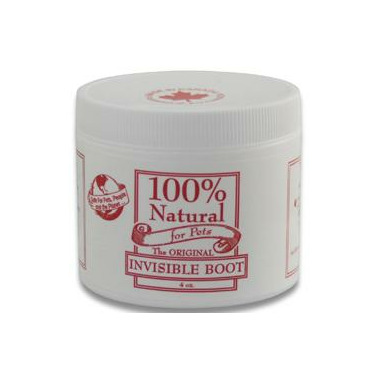 The Invisible Boot creates a barrier to shield pads from cold, salt, ice, and heat.  This lickable creamy blend of beeswax, oils and plant extracts provides protection while it soothes and moisturizes chapped pads.  Just apply before going out for a walk and simply wipe clean when you return.