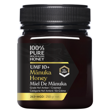 Certified UMF 10+ (MGO 263+) raw manuka honey.