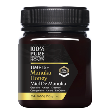 Certified UMF 15+ (MGO 514+) raw manuka honey.