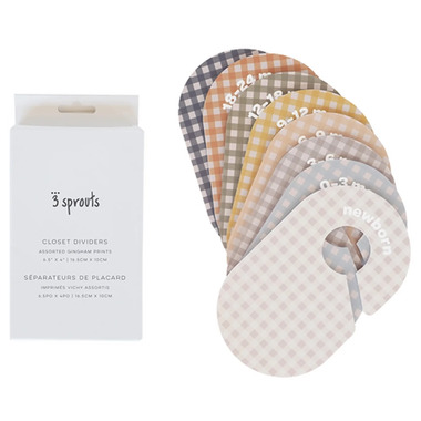 Keep your child's closet organized with the 3 Sprouts Closet Dividers. This 8-piece set includes dividers with sizing from newborn to 2T. Made to fit standard closet rods as well as wire shelving. With labels printed on both sides, storing, organizing and finding your child's clothes quickly is easier than ever!