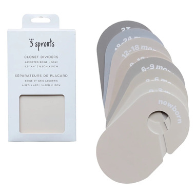Keep your child's closet organized with the 3 Sprouts Closet Dividers. This 8-piece set includes dividers with sizing from newborn to 2T. Made to fit standard closet rods as well as wire shelving. With labels printed on both sides, storing, organizing and finding your child's clothes quickly is easier than ever!