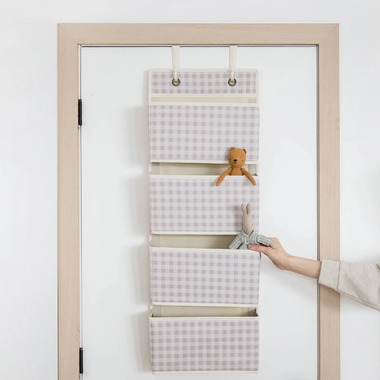 3 Sprouts 3 Sprouts Recycled Fabric Over the Door Organizer Gingham Beige