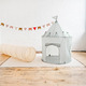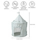 Tent has 2 mesh windows and a door that can be raised and lowered. Comes in solid colors and prints to fit seamlessly in any room of your home!