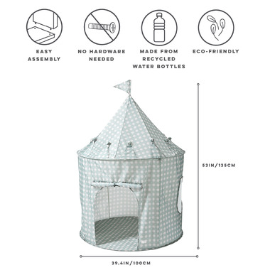 The 3 Sprouts Recycled Fabric Tent is the perfect play tent for your child! Easily assembled, lightweight and transportable, this tent will bring your child's imaginary world to life! This is the perfect place to play with friends or get cozy to read a book. Comes with tear-resistant recycled polyester and poles for sturdiness.