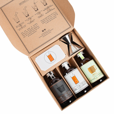 Each of the bottles can serve up to 6 drinks, for a total of 18 drinks per kit. Gift set includes instructions guide inside the box and on each bottle. Cocktail measuring tool also included.