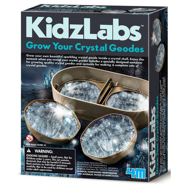 The 4M Crystal Geode Growing Kit will allow you to grow your own beautiful crystal geodes with this fun kit! Add the crystal compounds and hot water to the two geode containers, then wait 5-8 days for beautiful crystals to form inside the geodes.