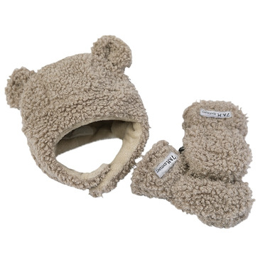 7AM Enfant Hat & Mittens Set Teddy Oatmeal