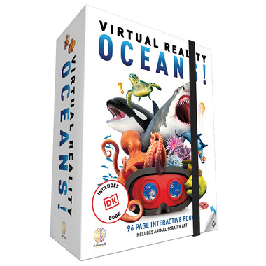 Includes a 96-page DK book filled with whales, sharks, and more with over 30 immersive experiences. VR goggles and scratch art kit included.
