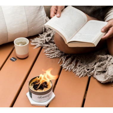Backyards to beaches and balconies to backcountry, the instant and portable Abeego Mini Campfire elevates moments to memories. Brighten everyday outdoor occasions with a small, captivating fire that lights quickly and extinguishes instantly. Made with beeswax, soy wax, tree resin, organic jojoba oil, hemp and organic cotton.