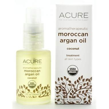Acure Aromatherapeutic Argan Oil with Coconut is incredibly rich in vitamin E, essential fatty acids, and proteins, argan oil helps restore texture, elasticity and tone. Lightweight and easily absorbed, with a delicious aroma of coconut.