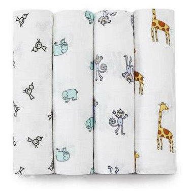 Includes: Pack of four 100% cotton muslin swaddling wraps