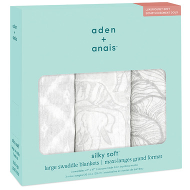 The aden + anais silky soft muslin baby swaddle blanket combines breathability and versatility with 100% viscose made from bamboo, making it the most luxurious fabric to use on your baby's delicate skin. The silky soft baby swaddle can also be used as a burp bib cloth, nursing cover and more.