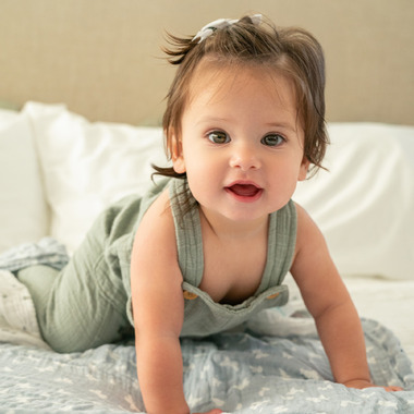 • Lightweight + breathable: Created with an open-weave cotton muslin to promote airflow and keep them comfortable in any season