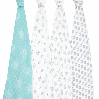 - Includes 4 pre-washed 47” x 47” (120cm x 120cm) 100% cotton muslin swaddles