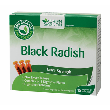 Adrien Gagnon Black Radish is a supplement for liver detox that is formulated with a complex of 4 different digestive plants. It can help with gallbladder problems, biliary deficiency, hepatic deficiency and liver problems.