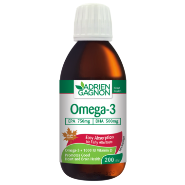 The most concentrated in omega-3 DHA formula from Adrien Gagnon, offered in a liquid form and enriched with vitamin D to preserve the heart, the brain, the bones and the teeth’s health. A simpler alternative for people who have difficulty swallowing big omega-3 softgels.