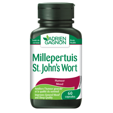 Medicinal Ingredients: Each capsule contains: St. John?s wort [Hypericum perforatum] (aerial parts): 300 mg From a 5:1 extract standardized at 0.28% in hypericin and equivalent to 1500 mg of whole dried herb. Non-Medicinal Ingredients: Gelatin, Magnesium Stearate, Maltodextrin, Silicon Dioxide.