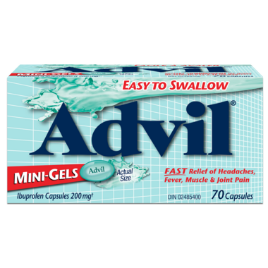 • Try Advil Mini-Gels for fast and effective relief of headaches, fever, muscle & joint pain