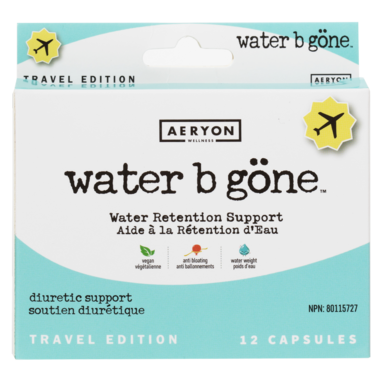 Water B gone is designed to relieve water retention. Water retention can commonly occur with flying as changes in cabin pressure and sitting for an extended period of time which may cause your body to hold onto water.