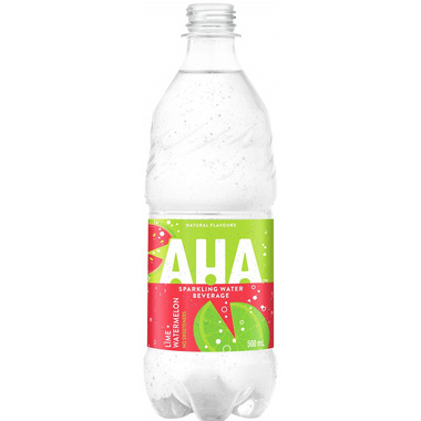 AHA Lime + Watermelon Sparkling Water is made with natural flavours, no sweeteners and no calories.