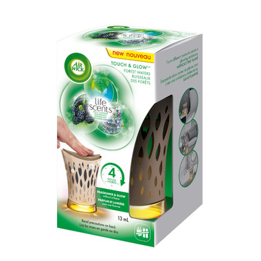 Air Wick Life Scents Touch & Glow is a candle without a flame that provides 4 hours of glow and fragrance with 1 press. Product lasts for 30 uses and 120 hours of fragrance. Transform your home into a sanctuary of hidden forest pools and lush greenery with the fresh scents of dewy leaves, mouth-watering blackberries and wild herbs.