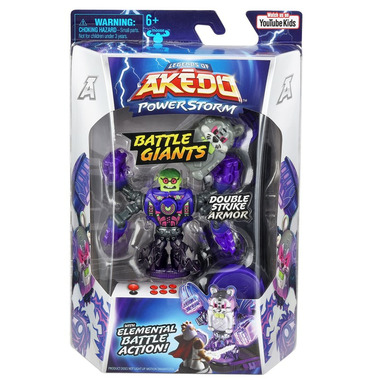 Get ready for some SUPER SIZED Elemental Battle Action with the Legends of Akedo Powerstorm Giants! Boosted with Elemental Powers, the Akedo Warriors Giants are back to battle with new Fighting Styles and Game Play! There are 4 new Giant Battling Warriors to collect and battle with throughout the Powerstorm Series. These Giant Warriors have double the defence with Double Strike Armor! There are now 3 Giant's fighting styles - Four-armed Fury Action, Super Slugger Action and the new Wrecking Fists Action! - Level up your skill and strategy. Challenge your friends as you battle to become the Ultimate Arcade Warrior with the Powerstorm Giants! Ready! Fight! Split Strike!