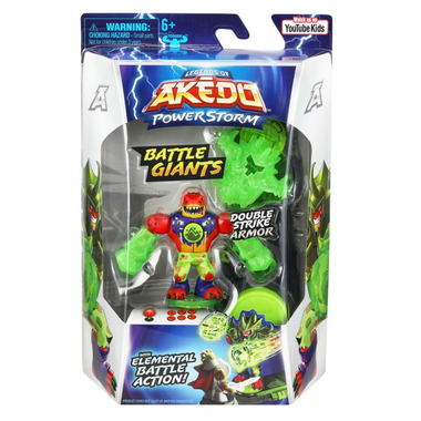 Get ready for some SUPER SIZED Elemental Battle Action with the Legends of Akedo Powerstorm Giants! Boosted with Elemental Powers, the Akedo Warriors Giants are back to battle with new Fighting Styles and Game Play! There are 4 new Giant Battling Warriors to collect and battle with throughout the Powerstorm Series. These Giant Warriors have double the defence with Double Strike Armor! There are now 3 Giant's fighting styles - Four-armed Fury Action, Super Slugger Action and the new Wrecking Fists Action! - Level up your skill and strategy. Challenge your friends as you battle to become the Ultimate Arcade Warrior with the Powerstorm Giants! Ready! Fight! Split Strike!