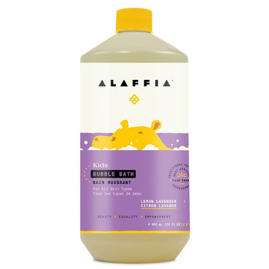 Alaffia’s nurturing lemon lavender bubble bath is prepared with Ethically Traded unrefined shea butter, protective shea leaf, calming lemon balm and lavender, nourishes and softens skin. Naturally foaming, gentle and non-irritating for clean, relaxing fun.
