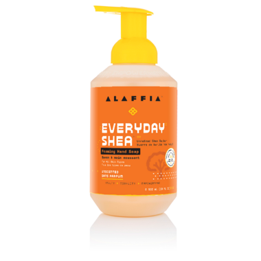 Alaffia's simply unscented hand soap, made with Ethically Traded unrefined shea butter, virgin coconut oil, protective neem leaf and unscented for sensitive skin, gently and thoroughly cleanses your hands, leaving them soft and moisturized.