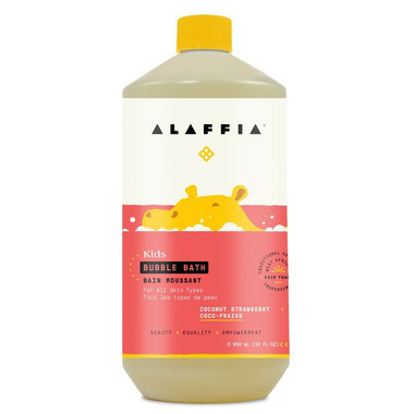 Alaffia’s playful coconut strawberry scented bubble bath, prepared with Ethically Traded virgin coconut oil, playful strawberry and hibiscus, nourishes and softens skin. Naturally foaming, gentle and non-irritating for clean, relaxing fun!