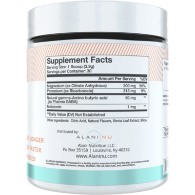These ingredients work together to support deep, restorative sleep and fewer leg cramps, while melatonin plays a role in setting the body’s circadian rhythm, the 24-hour “clock” that helps control when you fall asleep and wake up. Wake up, it’s time to sleep smarter! With Alani Nu Sleep, the ZZZ’s you catch can be A+ quality.
