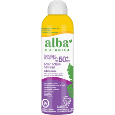 Alba Botanica, a leader in natural sun care, ads the spray n'go convenience of continuous sprays to its sun care collection! Kids Continuous Spray Sunscreen SPF 50+ is water resistant and hypoallergenic.