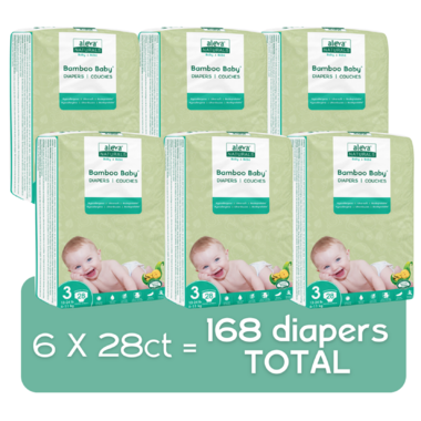Nothing is more delicate than your baby’s bottom and protecting it requires products that are gentle and free of harsh chemicals. Experiencing diaper rash can be painful for babies, therefore it is wise to take preventative measures to ensure no harsh irritants are rubbing against your baby’s precious skin. Frequent diaper changes are essential as wet diapers may trigger rashes and contribute to poor air circulation. Aleva Naturals Bamboo Baby Diapers have a 3-line wetness indicator that changes from yellow to green, to alert parents when it is time for a change!
