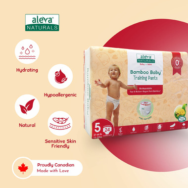 Feathery soft, durable, and biodegradable, Aleva Naturals Training Pants are the perfect balance between diapers and big kid underwear. Like all Aleva Naturals products, they are made with premium plant based materials, free from harsh chemicals or additives, so your little one stays comfortable, confident, and eco friendly every step of the way.