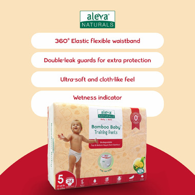 Make potty training simple and comfortable with Aleva Naturals Bamboo Baby Training Pants. Designed for little ones learning to pull up and down on their own, these training pants feature a 360 degree flexible waistband for an easy underwear like fit. Made with 0 percent plastic and crafted from bamboo fibres called Bamboo Kun, they are naturally soft, breathable, and gentle on delicate skin.