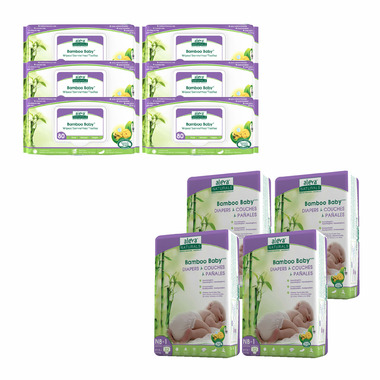 Now available in a convenient and economical bundle to help you save on the products you love. This bundle contains Aleva Naturals award-winning Bamboo Baby® Diapers and Bamboo Baby Wipes to conquer diaper changes both big and small!
