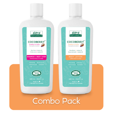 Aleva Naturals COCOBERRY Shampoo + Body Wash is specially formulated with a blend of Jojoba and Aloe Vera to naturally soothe, hydrate and clean sensitive skin. Aleva Naturals COCOBERRY Body Lotion is a unique, non-greasy, gentle moisturizer made with a blend of Shea Butter, Jojoba Oil and Aloe Vera that helps to nourish, soothe & soften dry and sensitive skin. This duo is natural, plant-based and infused with their unique COCOBERRY scent, making bath time more fun!