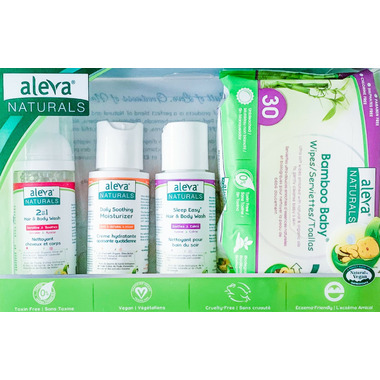 Aleva Naturals Newborn Starter Kit is carefully designed to give you the convenience you’re looking for on the go, the toss-and-go travel sizes pack contains: