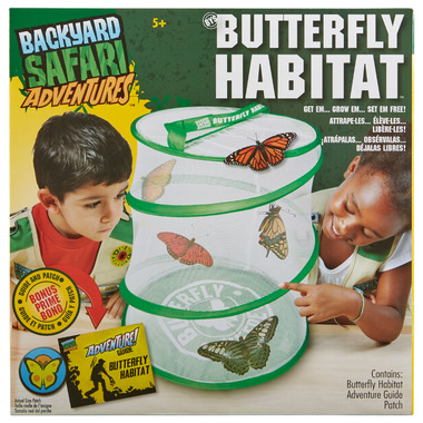 Backyard Safari Butterfly Habitat is a haven for fluttery finds! This butterfly environment is both lightweight and airy, so you can easily observe the beauty of all kinds of butterflies up close! The habitat's collapsible frame expands to 15-inches and the easy-access lid makes capture and release a cinch. A bonus adventure guide and patch are also included.