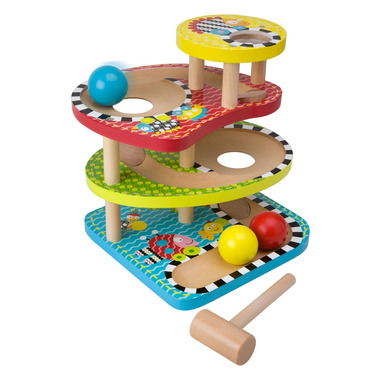 Grab your wooden mallet, bop the ball and watch it go round and round!