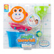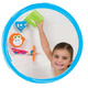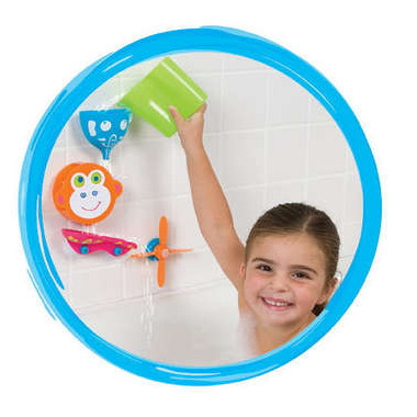 Make a cool waterfall in your tub! The pieces stick to the tub or tile wall with suction cups. Pour the water into the elephant funnel and watch the monkey make eyes at you. The water cascades down the slide then makes the fan spin! It’s wacky, wet fun in the tub!