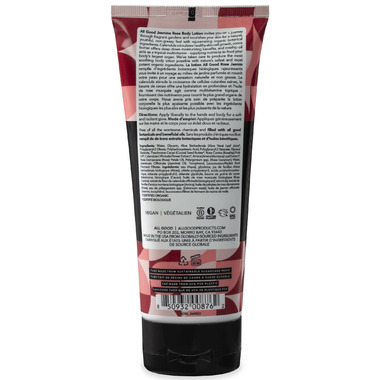 All Good Jasmine Rose Body Lotion invites you on a journey through fragrant gardens and nourishes your skin for a natural, youthful, non-greasy feel with rejuvenating organic botanical ingredients