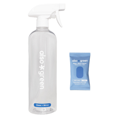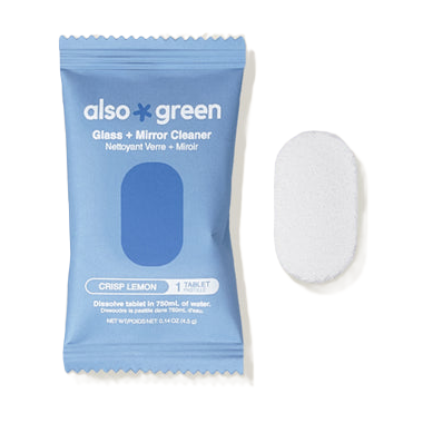 The Also Green Glass + Mirror Cleaner Kit deliver a streak-free shine on glass, mirrors, and reflective surfaces throughout your home. The powerful formula quickly lifts fingerprints, smudges, and everyday grime, leaving surfaces sparkling clean. Simply drop a tablet into a spray bottle with water to create a convenient glass cleaner thats effective without harsh fumes. Compact and low-waste, these tablets help replace single-use plastic cleaning bottles while keeping your home looking its best.