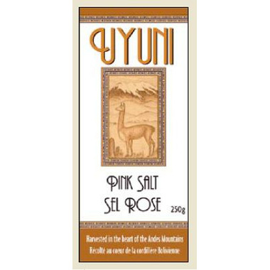 Pink andean table salt from Bolivia. The non-treated pink salt is harvested at 3000 meters above sea level in the heart of the Andes Mountains . The unique and elegant pink color comes from the minerals and trace elements found in the pure ancient sea salt deposits.