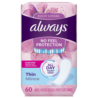 • Always Thin Daily Liners have a breathable layer that helps keep you dry