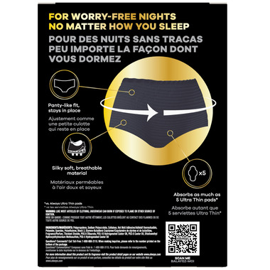 - Leak-free period nights are possible with Always ZZZ Overnight Disposable Period Underwear